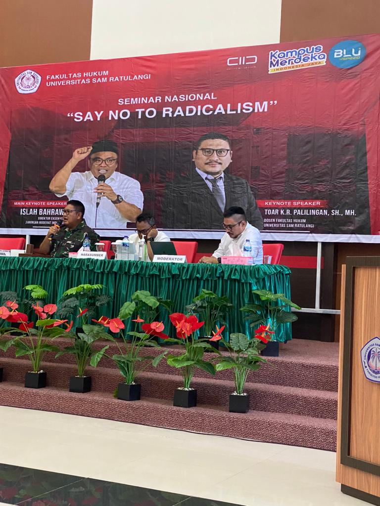 Dalam penyampaian Materi di seminar ini selain Kapoksahli Pangdam XIII/Merdeka juga oleh Bpk. Islah Bahrawi Direktur Eksekutif Jaringan Moderat Indonesia dan Dosen Fakultas Hukum Unsrat Keynote Speaker Toar K.R. Palilingan SH, MH.