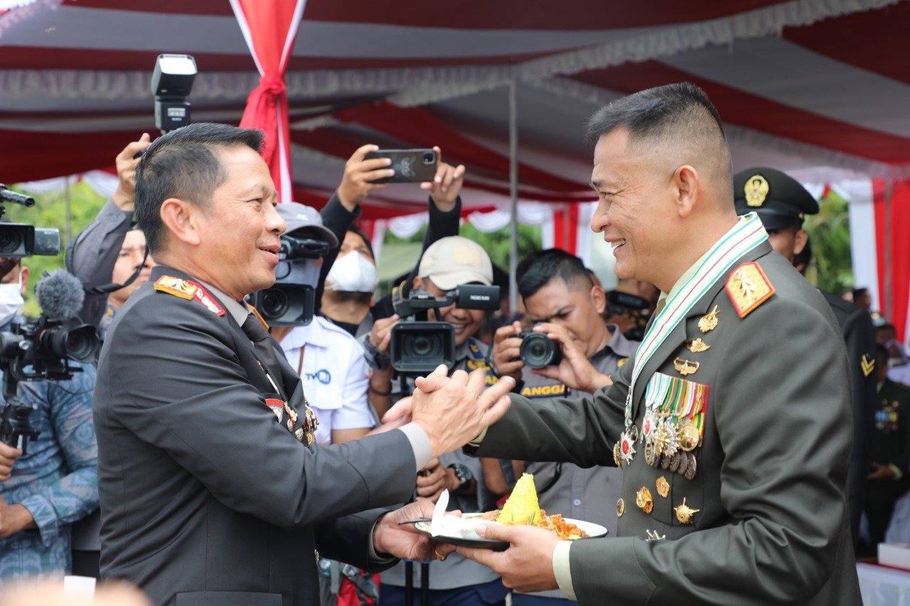 Dalam upacara tersebut Kapolda Bali memberikan kejutan berupa tumpeng kepada Pangdam IX/ Udayana sebagai hadiah dalam HUT TNI.