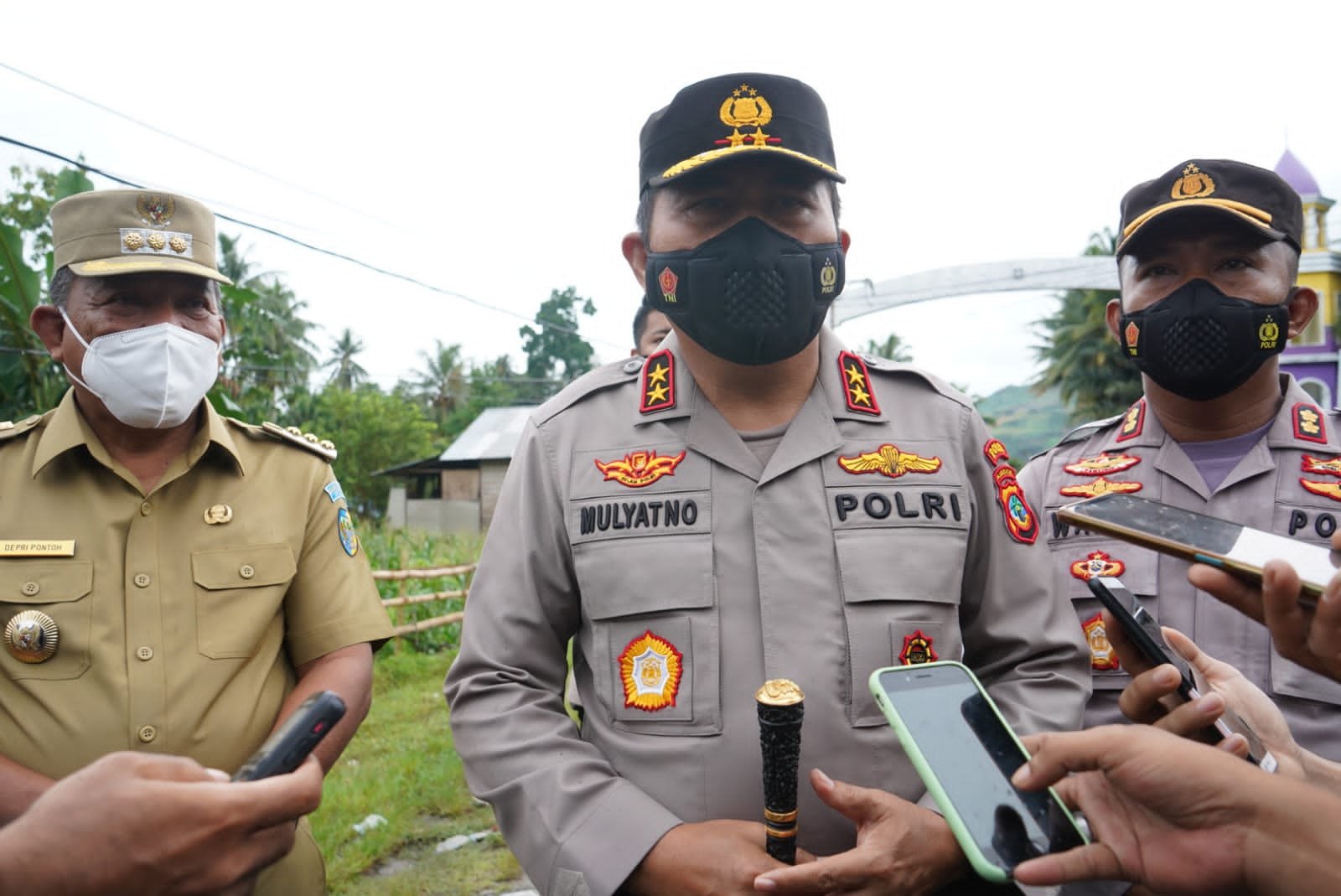 NASIONALXPOS.CO.ID, MANADO – Kapolda Sulawesi Utara Irjen Pol Mulyatno meninjau pelaksanaan tugas personel Polri yang berada di perbatasan Provinsi Sulut dan Gorontalo, di Desa Tontulow Utara Kecamatan Pinogaluman, Kabupaten Bolaang Mongondow Utara (Bolmut), Senin (20/12/2021) sore.