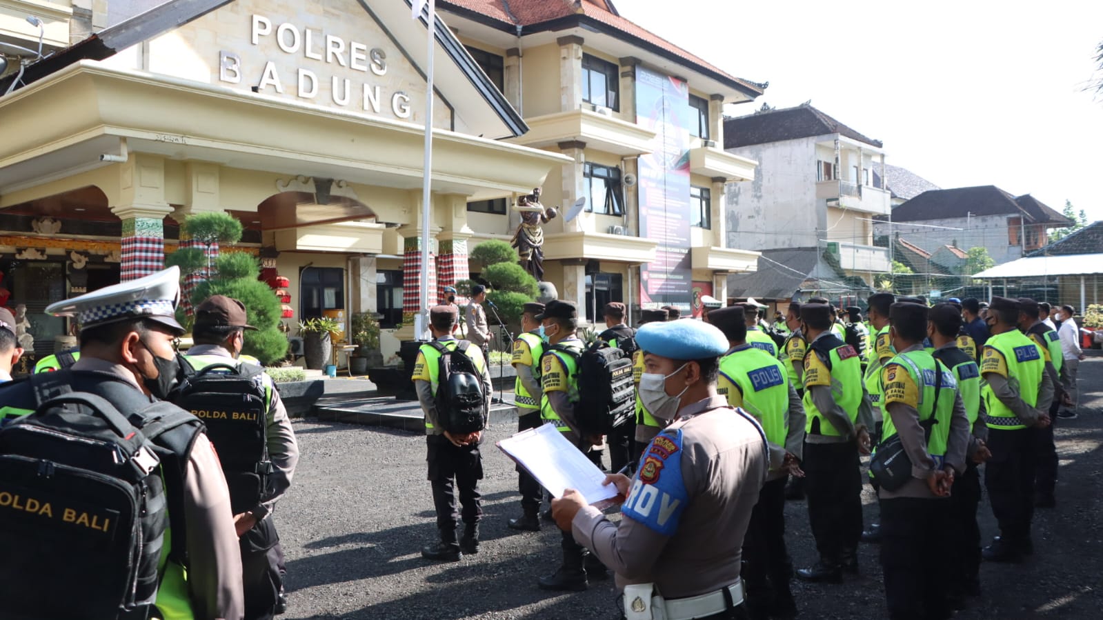 NASIONALXPOS.CO.ID, BADUNG —Kepala Kepolisian Resor Badung AKBP. Leo Dedy Defretes, pimpin langsung pelaksanaan Apel Kegiatan Rutin Yang Ditingkatkan (KRYD) sebagai kegiatan imbangan mendukung pengamanan KTT G 20 Tahun 2022 di Lapangan Mapolres jalan Kebo Iwa No 1, Mengwi, Kabupaten Badung, Bali. Selasa, (8/11) pagi 08.00 wita.
