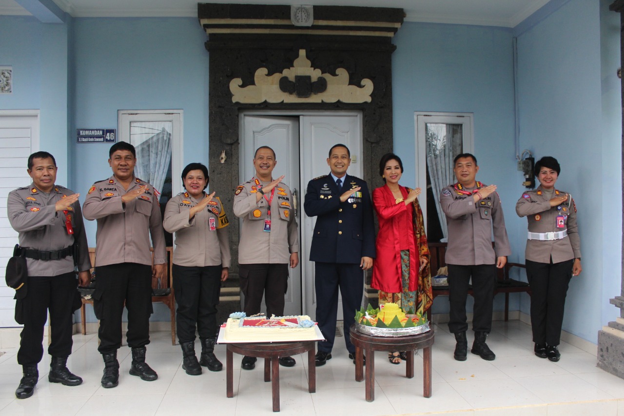 NASIONALXPOS.CO.ID, BADUNG – Kapolres Kawasan Bandara I Gusti Ngurah Rai AKBP. Ida Ayu Wikarniti, S.E bersama PJU Polda Bali masing-masing Dirpam Obvit Polda Bali, dan Kabid TI Polda Bali, serta anggota Polres Bandara mendatangi rumah dinas (rumdin) Danlanud I Gusti Ngurah Rai di Komplek Asrama Lanud I Gusti Ngurah Rai untuk memberikan ucapan Selamat Ulang Tahun Tentara Nasional Indonesia Ke-77, rabu (5/10/2022).