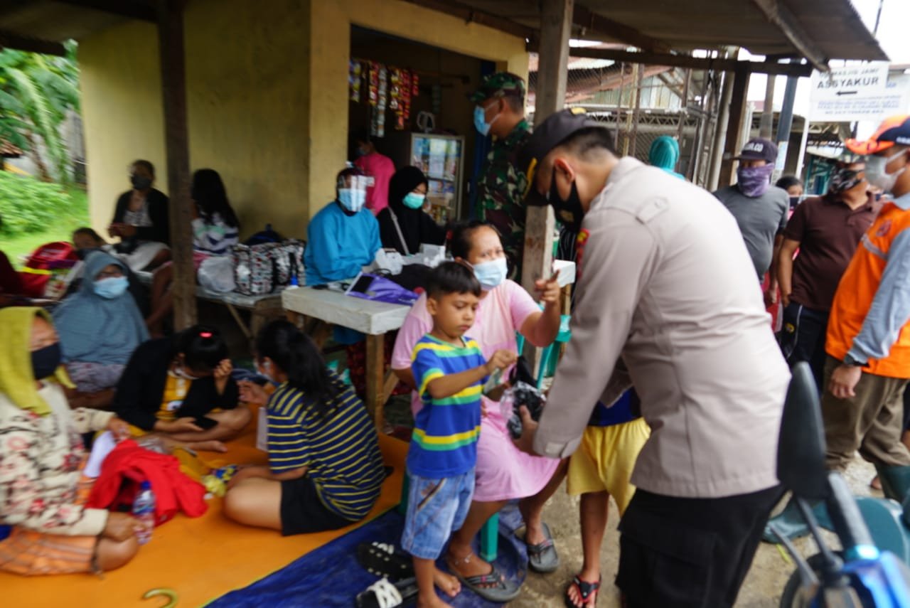 “Di lokasi banjir dan tempat korban mengungsi tadi kami juga memberikan edukasi agar para korban tetap mengedepankan protokol kesehatan, agar para pengungsi korban banjir juga selalu menjaga jarak, dan meminta agar selalu menggunakan masker” pungkas Hendra Gunawan.