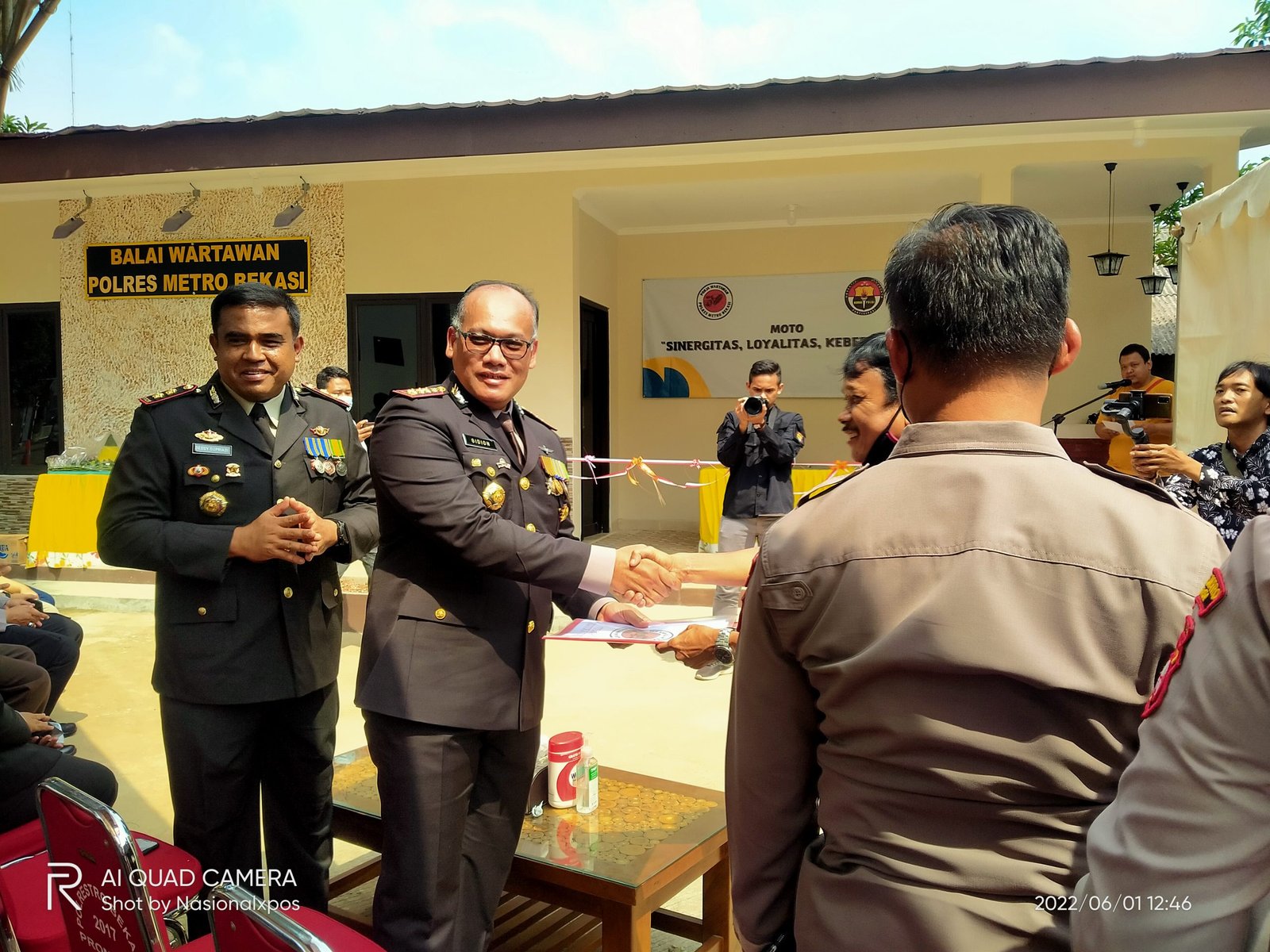 NASIONALXPOS.CO.ID, BEKASI – Kapolres Metro Bekasi Kombes Pol Gidion Arif Setyawan meresmikan balai Pokja wartawan Presisi di Mapolres Metro Bekasi, Kecamatan Cikarang Utara, Bekasi. Rabu (1/6/2022) siang.