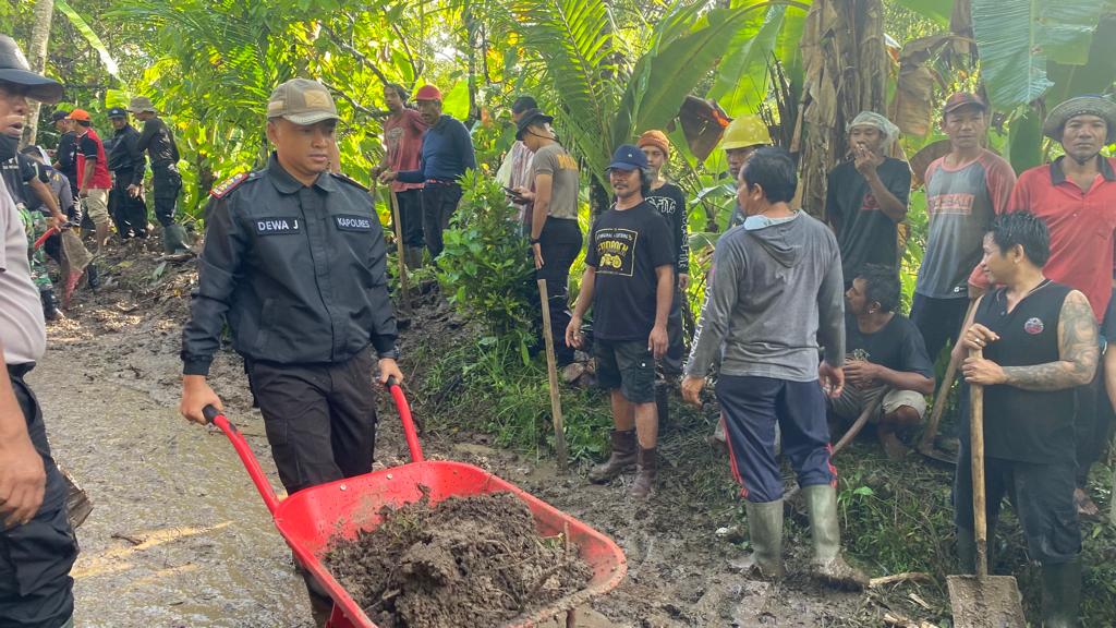 Terbukti, karena derasnya hujan yang berkepanjangan, mengakibatkan terjadinya longsor di beberapa tempat di wilayah Kabupaten Jembrana yaitu, di Wilayah Desa Yehembang Kauh, telah dilaksanakan kegiatan gotong royong untuk membersihkan dan memindahkan material longsor, Minggu, (9/10/2022) pagi.