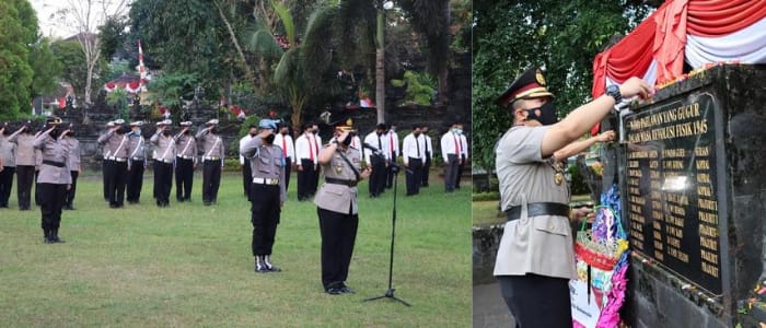 Dalam kegiatan tabur bunga di Tugu Pahlawan Ciung Wanara Kabupaten Karangasem tersebut dipimpin oleh Kapolres Karangasem AKBP Ricko A.A Taruna, S.H.,S.I.K.,M.H.,M.M., yang dihadiri Waka Polres Karangasem Kompol Fachmi Hamdani, S.Psi.,S.I.K., PJU dan Perwira Staf, pasukan Bintara, Polwan serta Bhayangkari.