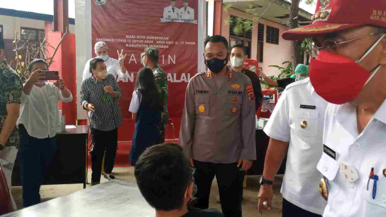 Kapolres Minahasa Dampingi ROR-RD Tinjau Vaksinasi Anak Sekolah