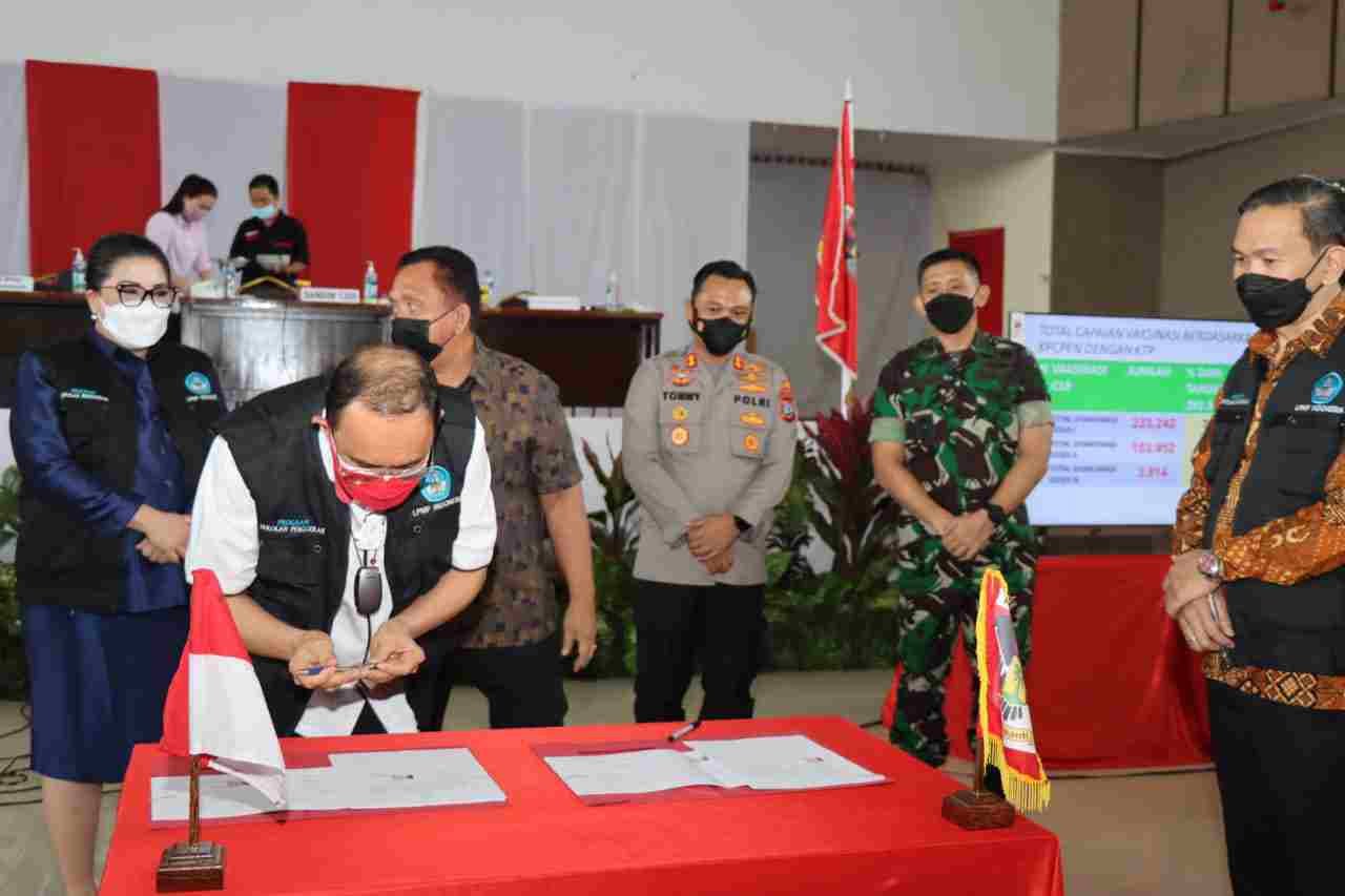 Kapolres Minahasa Hadiri Rapat Kerja Percepatan Vaksinasi bersama Forkopimda