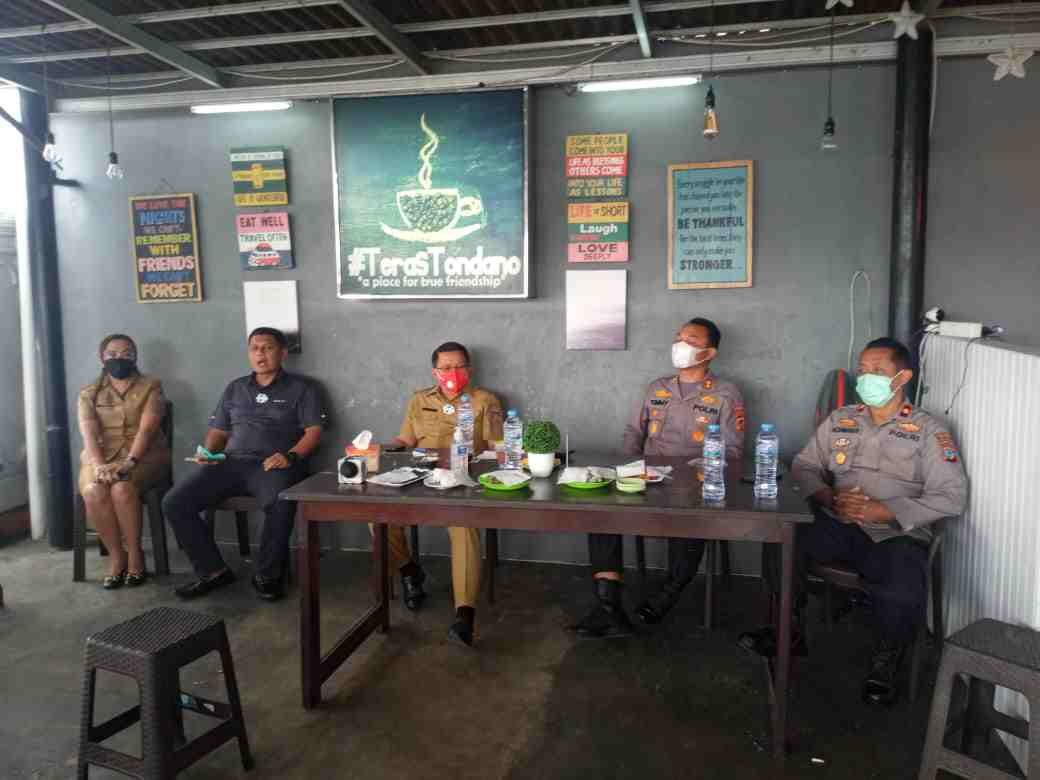 Pelaksana tugas (Plt) Kapolres Minahasa AKBP Tommy Bambang Souissa SIK, bersama Asisten 1 Pemkab Minahasa Dr Denny Mangala, Dandim 1302 Minahasa Letkol Inf Herbeth Andi Amino Sinaga dan didampingi Wakapolres Achmad Soetrisno SE dalam pertemuan dengan wartawan di rumah makan Teras Tondano, Selasa (6/7/2021) menegaskan, pihaknya mendukung sepenuhnya dan terlibat langsung PPKM Mikro.