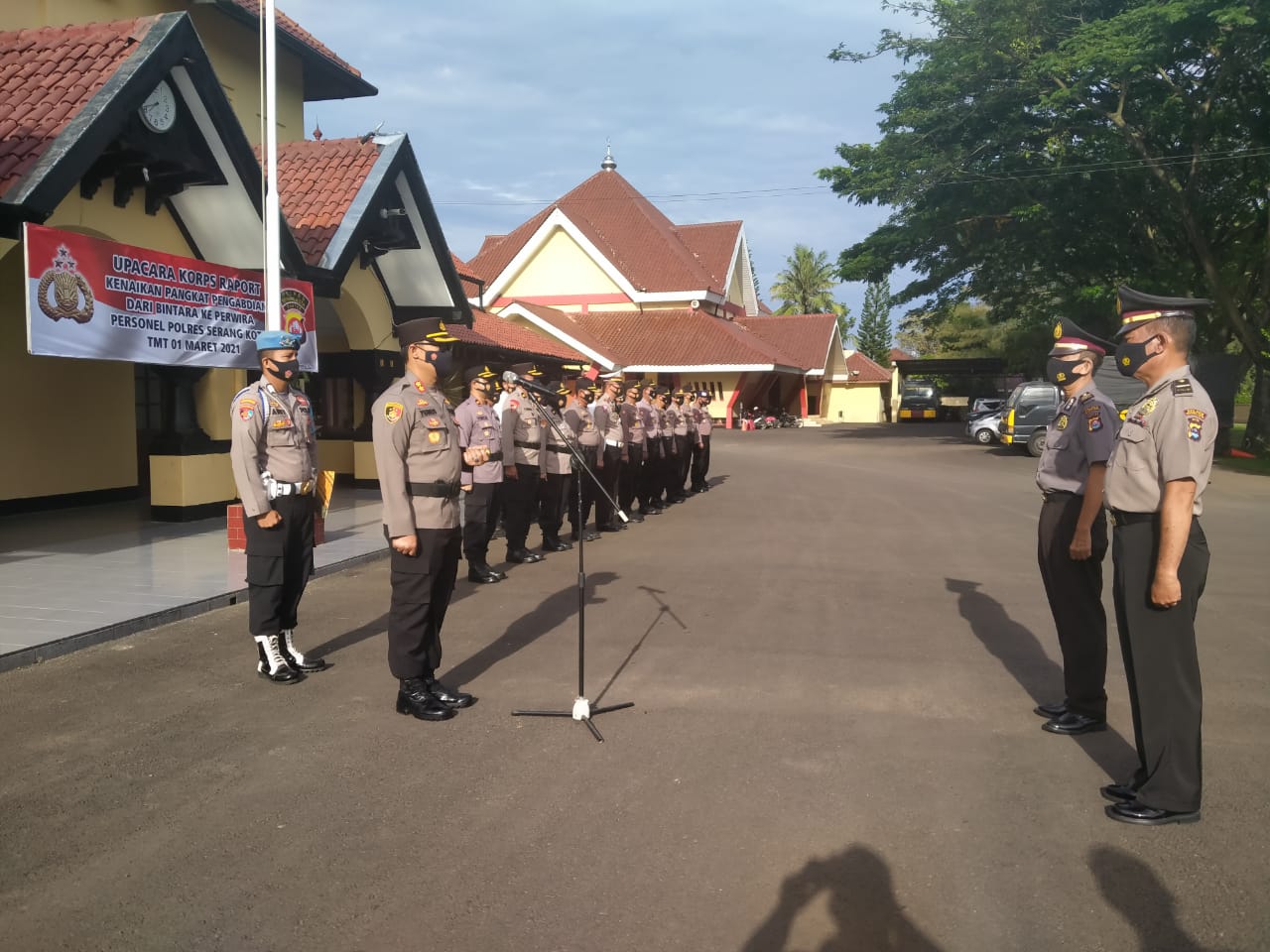 NASIONALXPOS.CO.ID, KOTA SERANG – Kepala Kepolisian Resor Serang Kota Polda Banten AKBP Yunus Hadith Pranoto, S.IK., M.Si., memimpin upacara kenaikan pangkat pengabdian dari Bintara ke Perwira, bertempat di lapangan hitam Mapolres Serang Kota, Senin (01/03/2021).