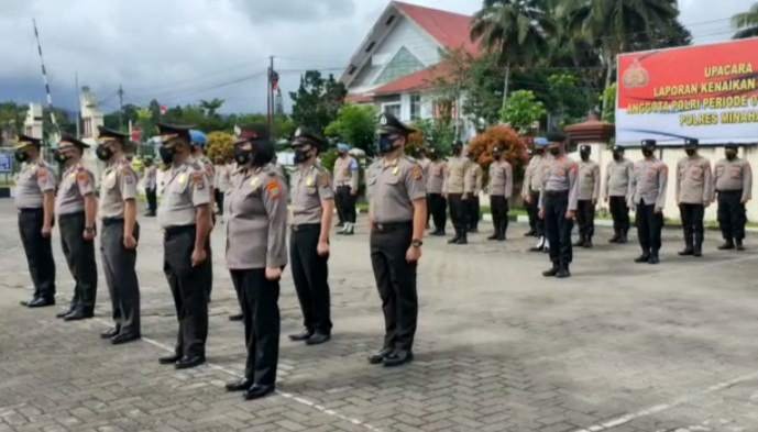 NASIONALXPOS.CO.ID, MINAHASA – Kapolres Minahasa AKBP Tommy Bambang Souissa SIK, memimpin langsung Upacara Laporan Kenaikan Pangkat 75 Anggota Polri, bertempat di halaman Upacara Markas Komando (Mako) Polres Minahasa, Kelurahan Wewelen, Kecamatan Tondano Barat, Kabupaten Minahasa, Jum’at (31/12/2021).