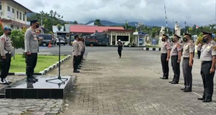 Kapolres Minahasa dalam sambutannya, memberikan arahan kepada 75 personel ini tentang tugas pokok dan fungsi anggota yang akan lebih.