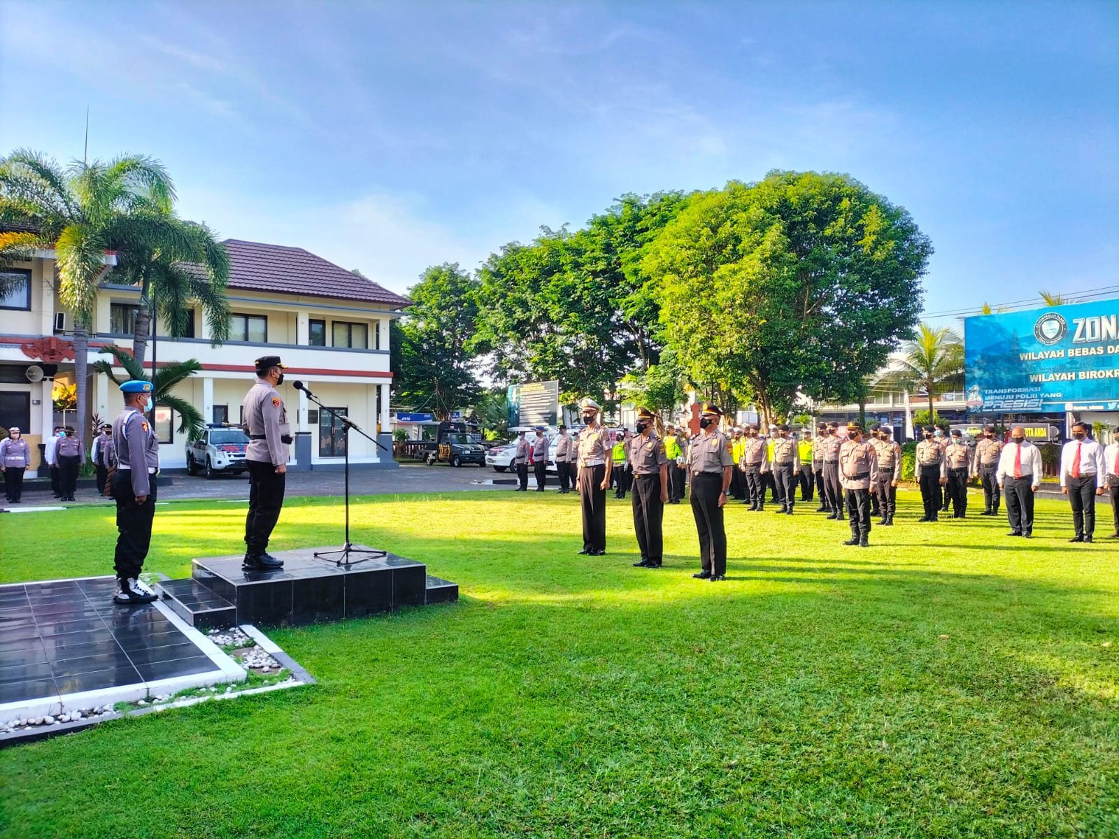 Upacara dihadiri oleh Wakapolres Tabanan dan diikuti pejabat utama, perwira, brigadir, serta PNS Polres Tabanan. Pelaksanaan kegiatan tetap berlangsung dengan menerapkan protokol kesehatan (prokes), menjaga jarak dan memakai masker. Adapun personil yang naik pangkat pengabdian sebanyak tiga orang dari Aiptu ke Ipda adalah Ipda I Wayan Sukanegara, Ipda I Gusti Nyoman Suteja, dan Ipda I Wayan Suaka. Ke tiga personil tersebut beberapa bulan lagi akan memasuki masa Purna tugas.