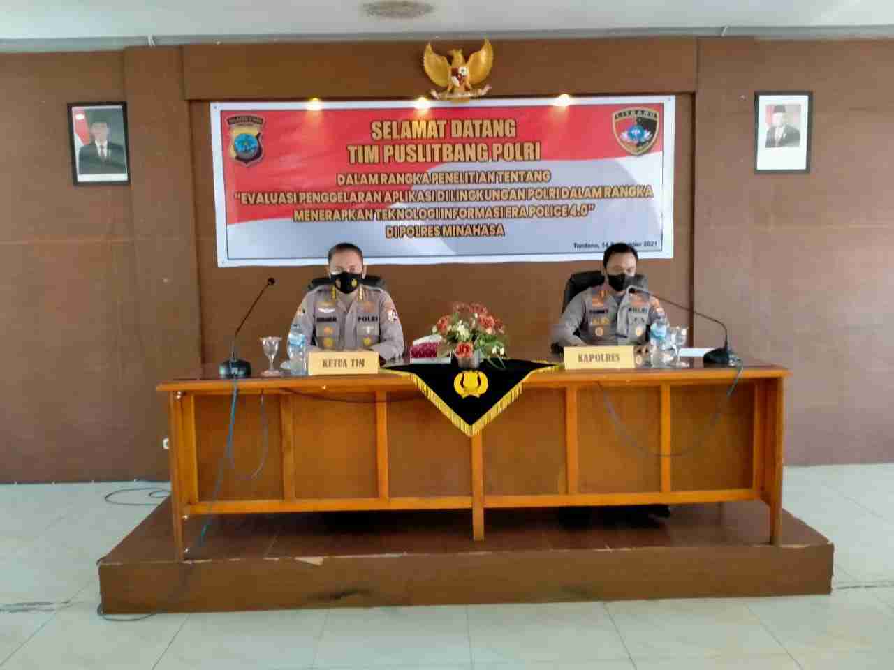 Kedatangan Tim Puslitbang Polri untuk melakukan Penelitian tentang Evaluasi Penggelaran Aplikasi di Lingkungan Polri, dalam Penerapan Teknologi Informasi Era Police 4,0″ di Polres Minahasa.