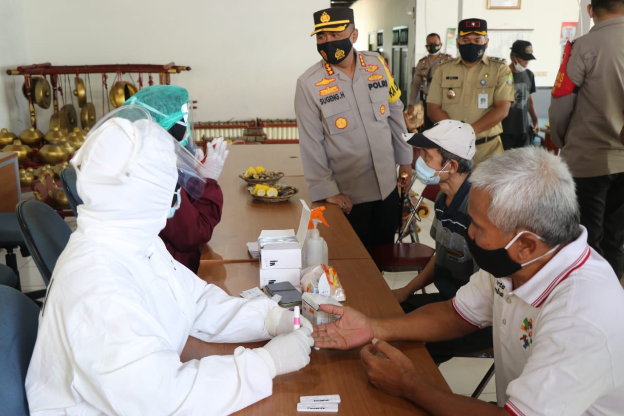 Yaitu dengan memberikan Vitamin Probiotik bagi warga, melakukan Rapid Test Antigen, penyemprotan disinfektan juga pemberian paket sembako bakti sosial (baksos) Polri.