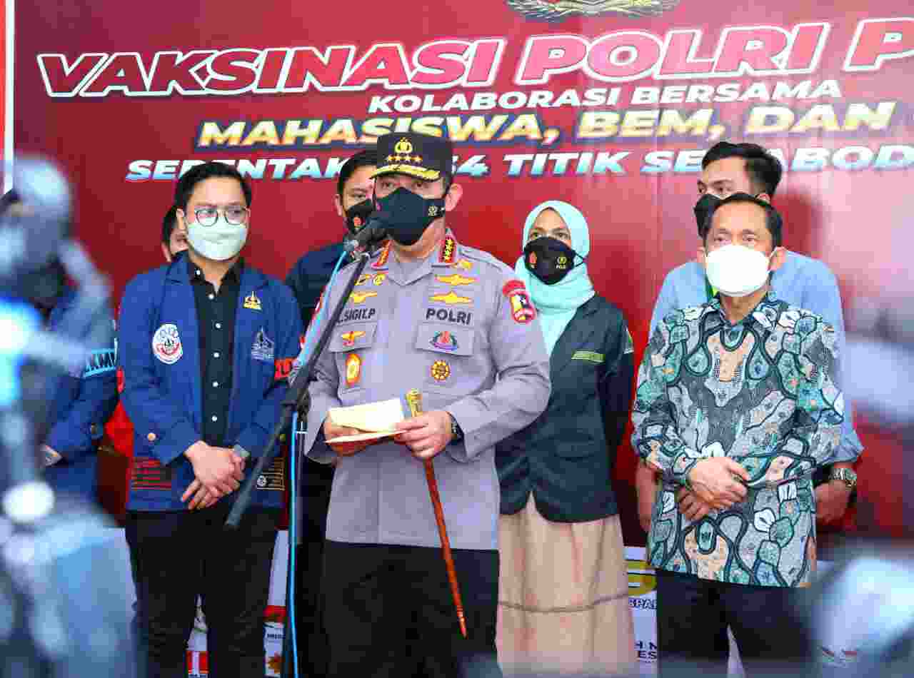 NASIONALXPOS.CO.ID, JAKARTA – Kapolri Jenderal Listyo Sigit Prabowo meninjau secara langsung kegiatan akselerasi vaksinasi yang diselenggarakan bersama dengan elemen mahasiswa, BEM dan Organisasi Kepemudaan (OKP) di Gelanggang Olahraga Universitas Trisakti, Jakarta, Selasa (29/3/2022).