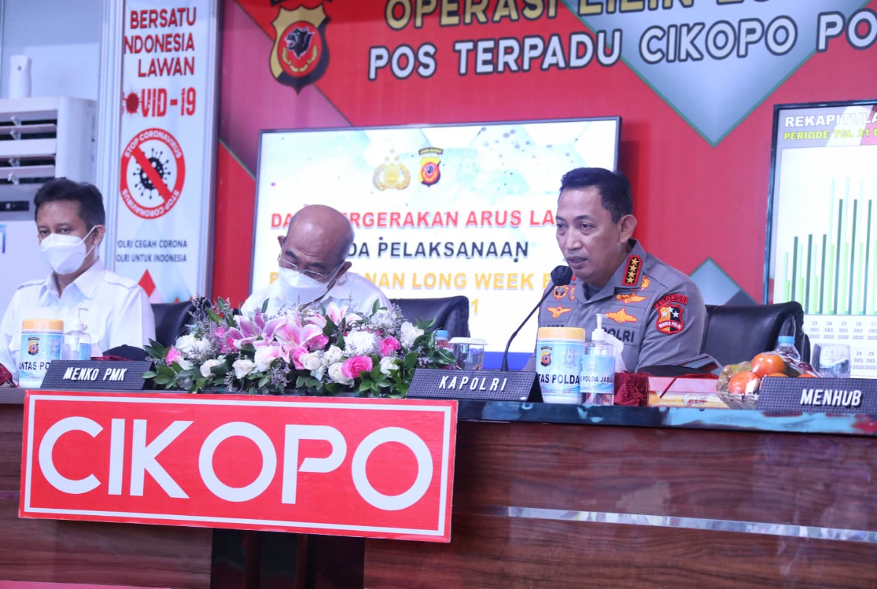 NASIONALXPOS.CO.ID, JAWA BARAT – Menteri Koordinator Bidang Pembangunan Manusia dan Kebudayaan (PMK) Muhadjir Effendy, Menteri Kesehatan Budi Gunadi Sadikin, Menteri Perhubungan Budi Karya Sumadi dan Kapolri Jenderal Listyo Sigit Prabowo kembali melanjutkan tinjauannya dalam rangka memastikan kesiapan jelang libur Natal dan Tahun Baru (Nataru). Kali ini, mereka mengecek Pos Terpadu Cikopo yang berlokasi di Ruas Tol Cipularang.
