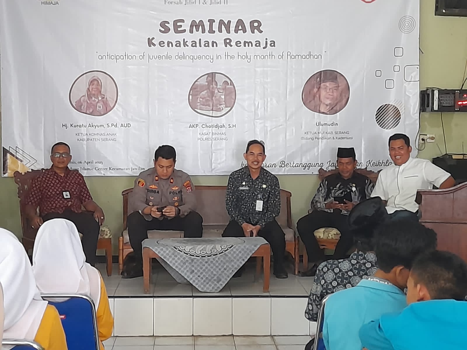 Kegiatan Seminar Kenakalan Remaja ini turut hadir dalam kegiatan tersebut Camat Jawilan, Sat Binmas polres Serang, Ketua Komnas anak Kabupaten Serang, Ketua Himaja dan Perwakilan Pelajar SMA Jawilan, kopo, dan pamarayan.