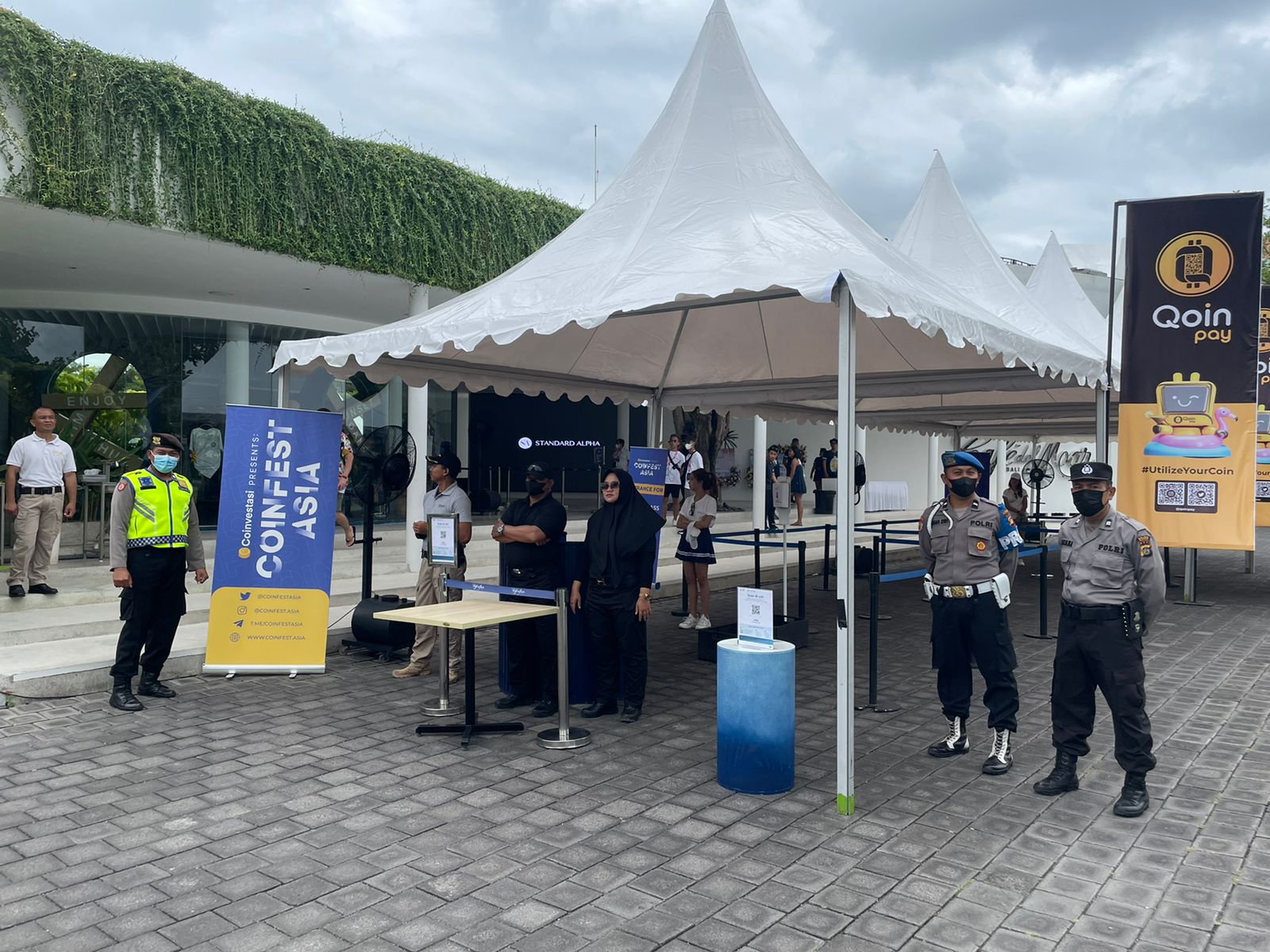 Personil Polsek Kuta Utara mengamankan kegiatan Konferensi Coinfest Asia 2022 berlangsung selama 2 hari mulai hari kamis tanggal 25 sampai 26 Juli 2022 bertempat di Cafe Delmar, Jl. Subak Sari, Tibubeneng, Kec. Kuta Utara, Kabupaten Badung. Jumat, (26-8-202) siang.