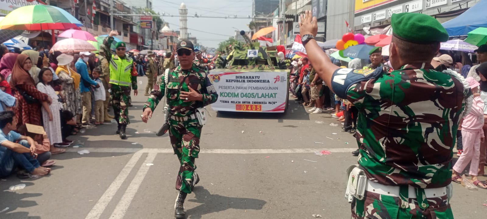 NASIONALXPOS.CO.ID, LAHAT – Kodim 0405/Lahat turut memeriahkan rangkaian HUT ke-78 Kemerdekaan Republik Indonesia tahun 2023, dengan ikut dalam Karnaval Pembangunan Umum dan Kendaraan Hias yang dilaksanakan pada Sabtu (19/08/2023).