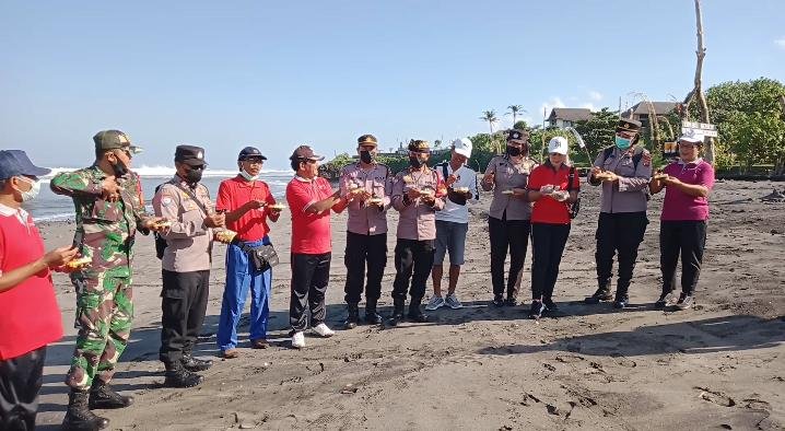 NASIONALXPOS.CO.ID, TABANAN –Dalam rangka pelestarian habitat penyu yang merupakan binatang laut yang dilindungi, Kasat Binmas Polres Tabanan, selaku pengemban fungsi preventif dan preentif dalam kepolisian melaksanakan pelepasan tukik (anak penyu) dipantai Yeh Gangga, Desa Sudimara, Kecamatan /Kabupaten Tabanan. Selasa, (21-06-2022) pagi.