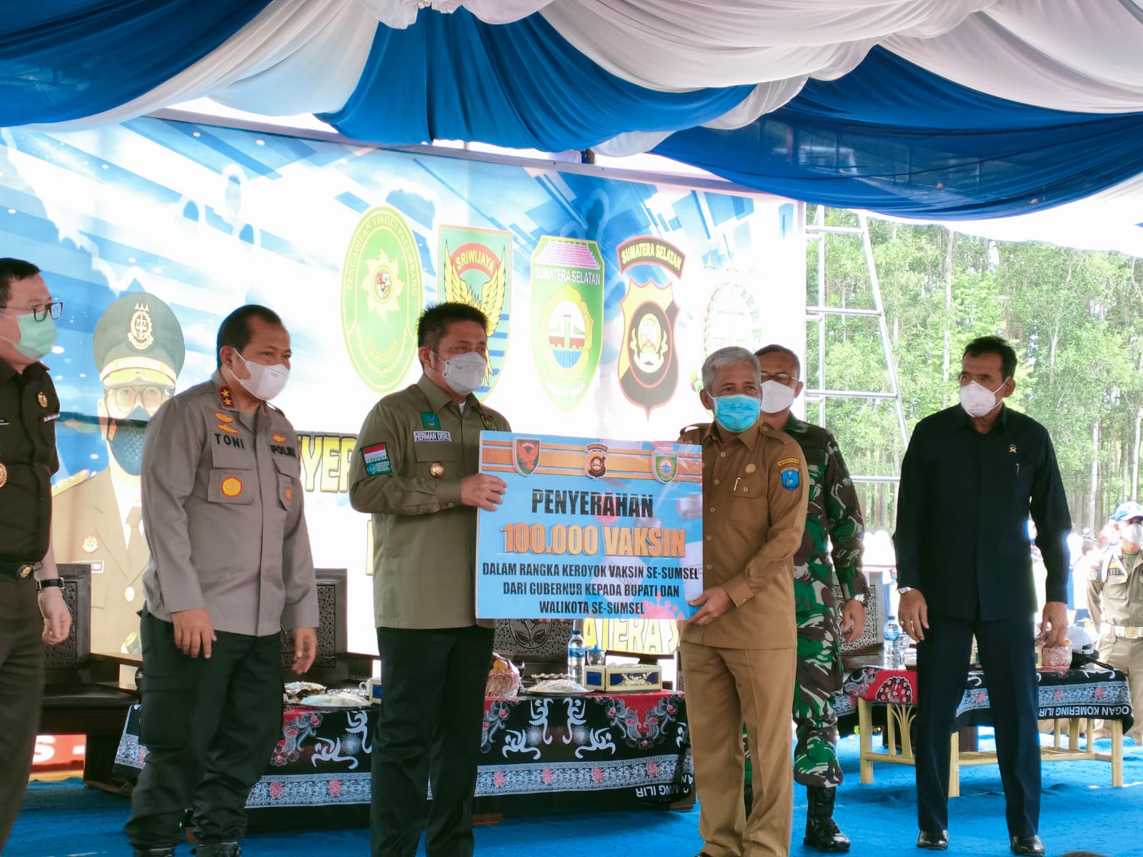 Kasdam II/Swj Dampingi Gubernur Sumsel Serahkan 100 Ribu Vaksin Covid-19 di OKI