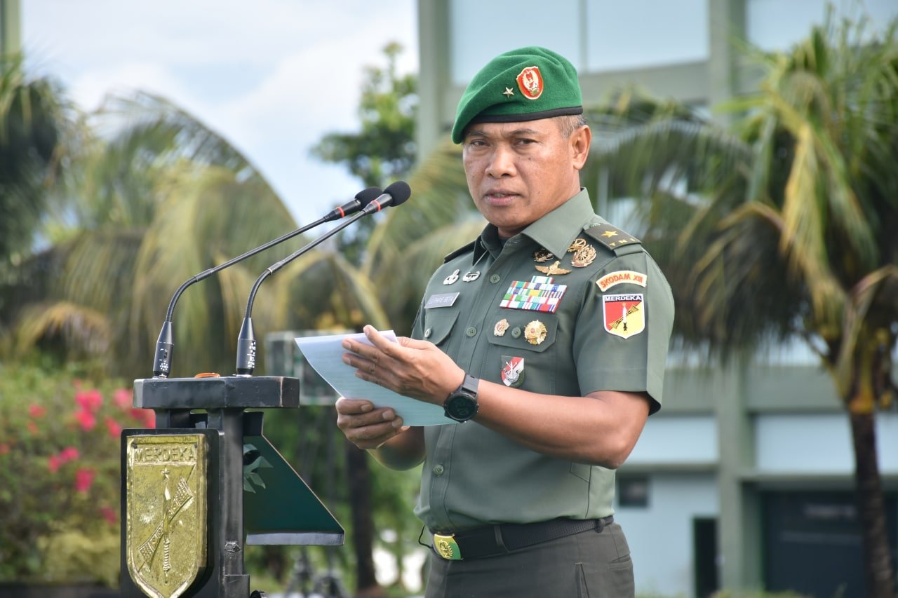 NASIONALXPOS.CO.ID.MANADO,-Saya mengapresisasi dan merasa bangga kepada seluruh prajurit TNI AD yang terlibat dalam pengamanan dan mendukung pelaksanaan KTT G-20 yang diselenggarakan di Bali. Hal ini menunjukkan bangsa kita memiliki kapasitas dan kemampuan sebagai tuan rumah yang baik untuk melaksanakan event-event internasional dan pertemuan penting sejenis lainnya. Demikian sambutan tertulis Kepala Staf TNI AD (Kasad) Jenderal TNI Dudung Abdurachman, S.E., M.M,.yang dibacakan oleh Kasdam XIII/Merdeka Brigjen TNI Luthfie Beta, S, Sos, M.Si, selaku Irup Upacara 17-an di Makodam, senin (17/11/2022).