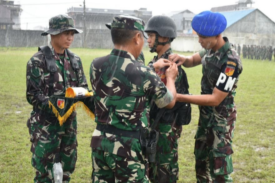 Kegiatan penutupan Latihan Pratugas Satgas Satuan Organik Yonif Raider 712/WT tersebut ditandai dengan penanggalan tanda peserta oleh Kasdam XIII/Merdeka kepada perwakilan peserta latihan.
