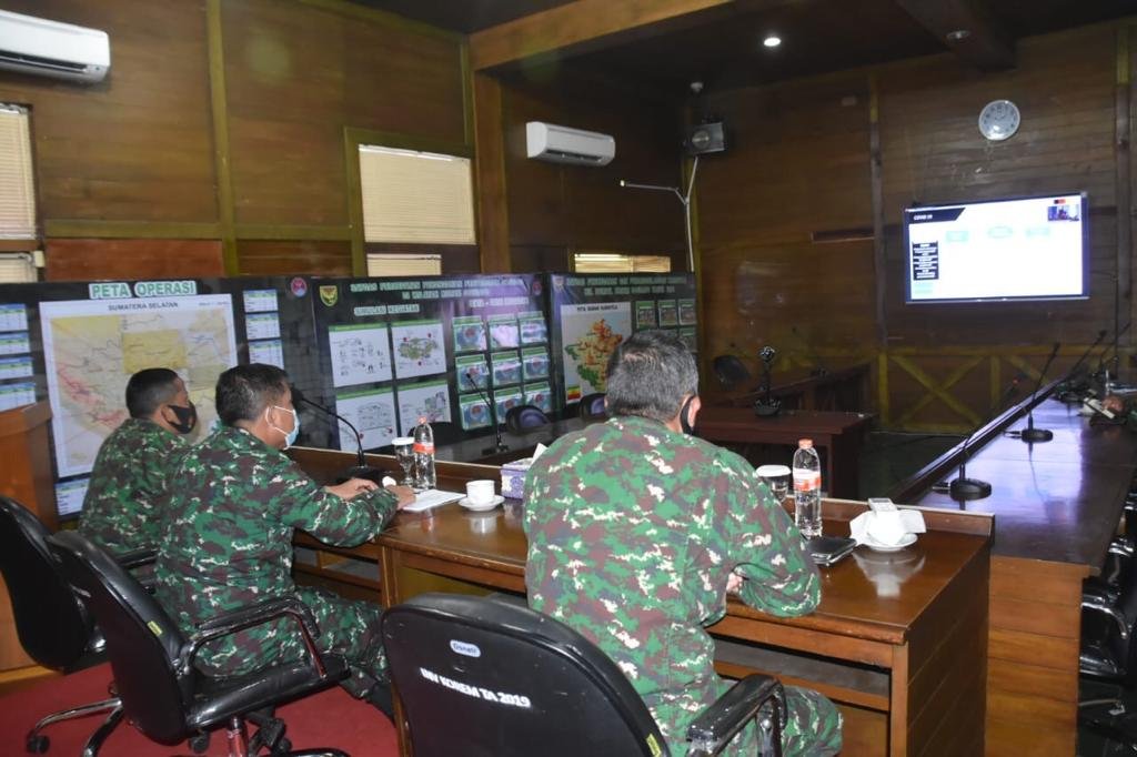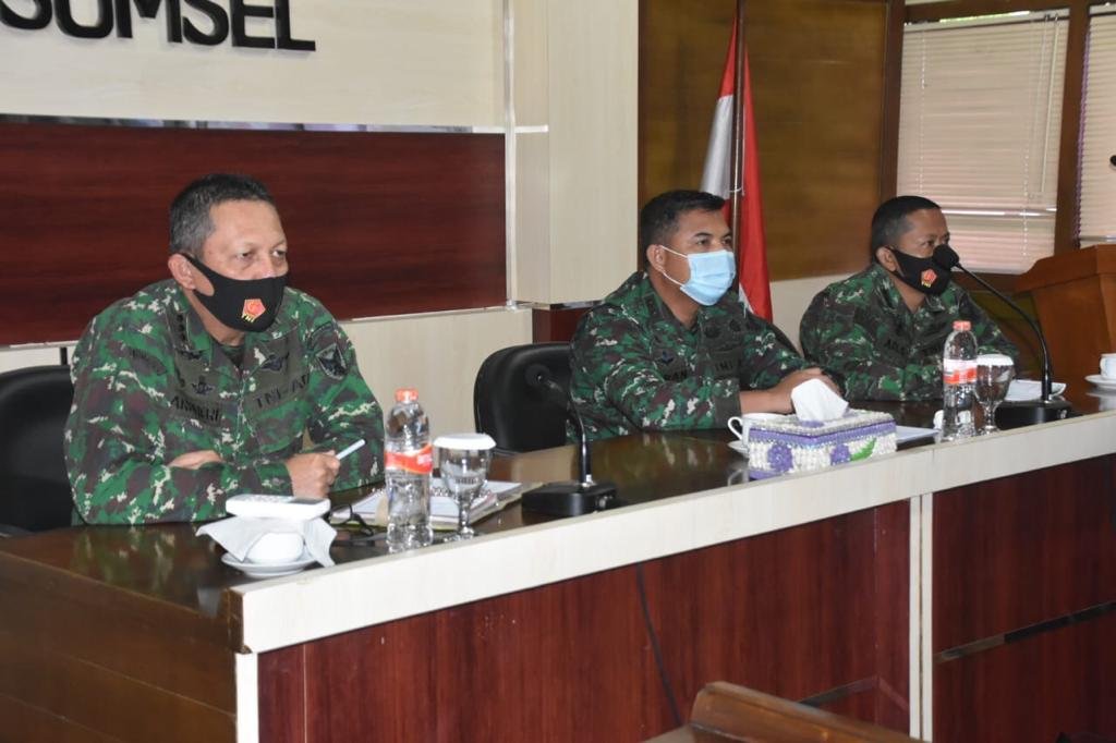 NASIONALXPOS.CO.ID, PALEMBANG – Kepala Staf Korem (Kasrem) 044/Gapo, Kolonel Inf Ardiheri, didampingi Pasi Ops Kolonel Inf Ari Sudarsono dan Kasi Intel Letkol Inf Efran Herriyanto, mengikuti kegiatan Web Seminar (Webinar) melalui Video Conference (Vidcon), di Ruang Yudha Makorem 044/Gapo Jalan Jenderal Sudirman KM 4,5 Palembang, Selasa (28/7/2020).