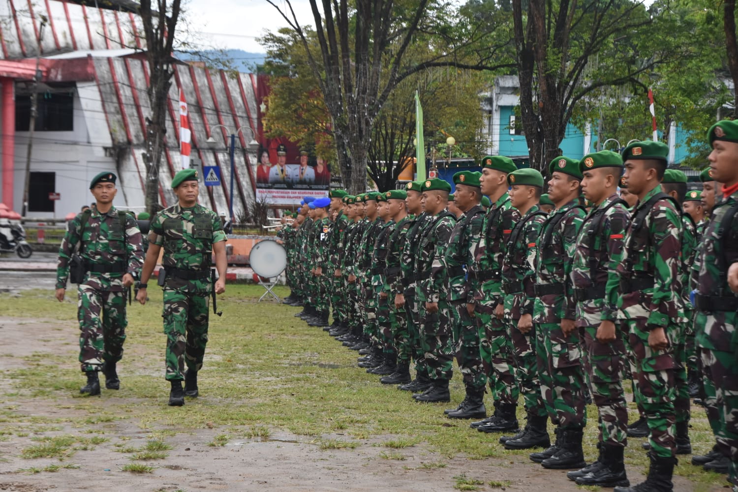 NASIONALXPOS.CO.ID.MANADO – Kasrem 131/Santiago Kolonel Inf Hengki Yuda Setiawan bertindak sebagai inspektur upacara pada Upacara Pelepasan Peleton Beranting Yudha Wastu Pramuka Jaya Pertama di , Lapangan Sparta Tikala Jl. Balai Kota, Tikala Ares, Kec Tikala, Kota Manado, Minggu (18/12/2022).