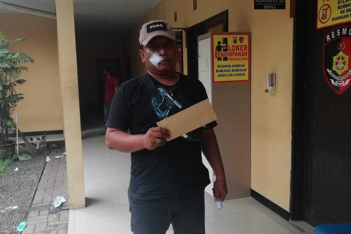 EJ yang berprofesi sebagai wartawan, Redaktur di media Online Poskota.net babak belur di keroyok dan mengalami luka dibagian bibir dan pelipis mata kirinya serta luka lebam di beberapa bagian tubuh usai sejumlah pria tak dikenal mengeroyoknya di pelataran parkir belakang Trenz Club Karaoke & Lounge di Scientia Boulevard Barat Kavling T03 Kabupaten Tangerang, pada hari Minggu (20/02/2022) pukul 03:00 WIB.