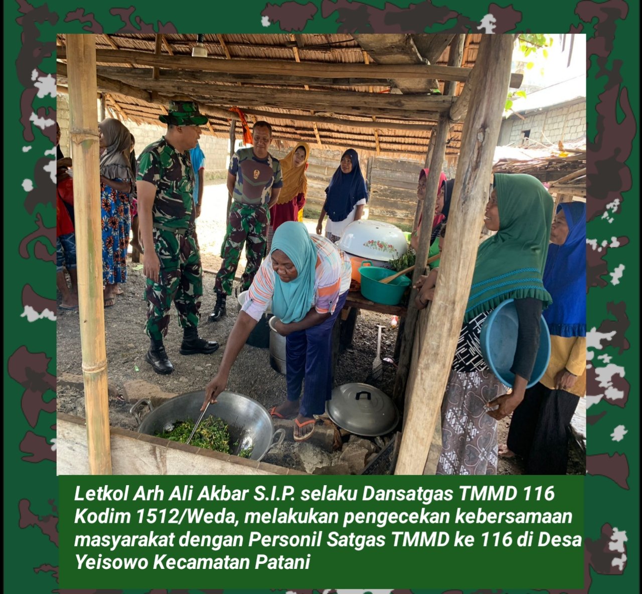 Dandim 1512/Weda menyampaikan banyak terimakasih, kepada seluruh warga masyarakat Desa Yeisowo Kecamatan Patani Kabupaten Halmahera Tengah yang sudah bekerja sama dengan Personil satgas TMMD ke 116 Kodim 1512/Weda.