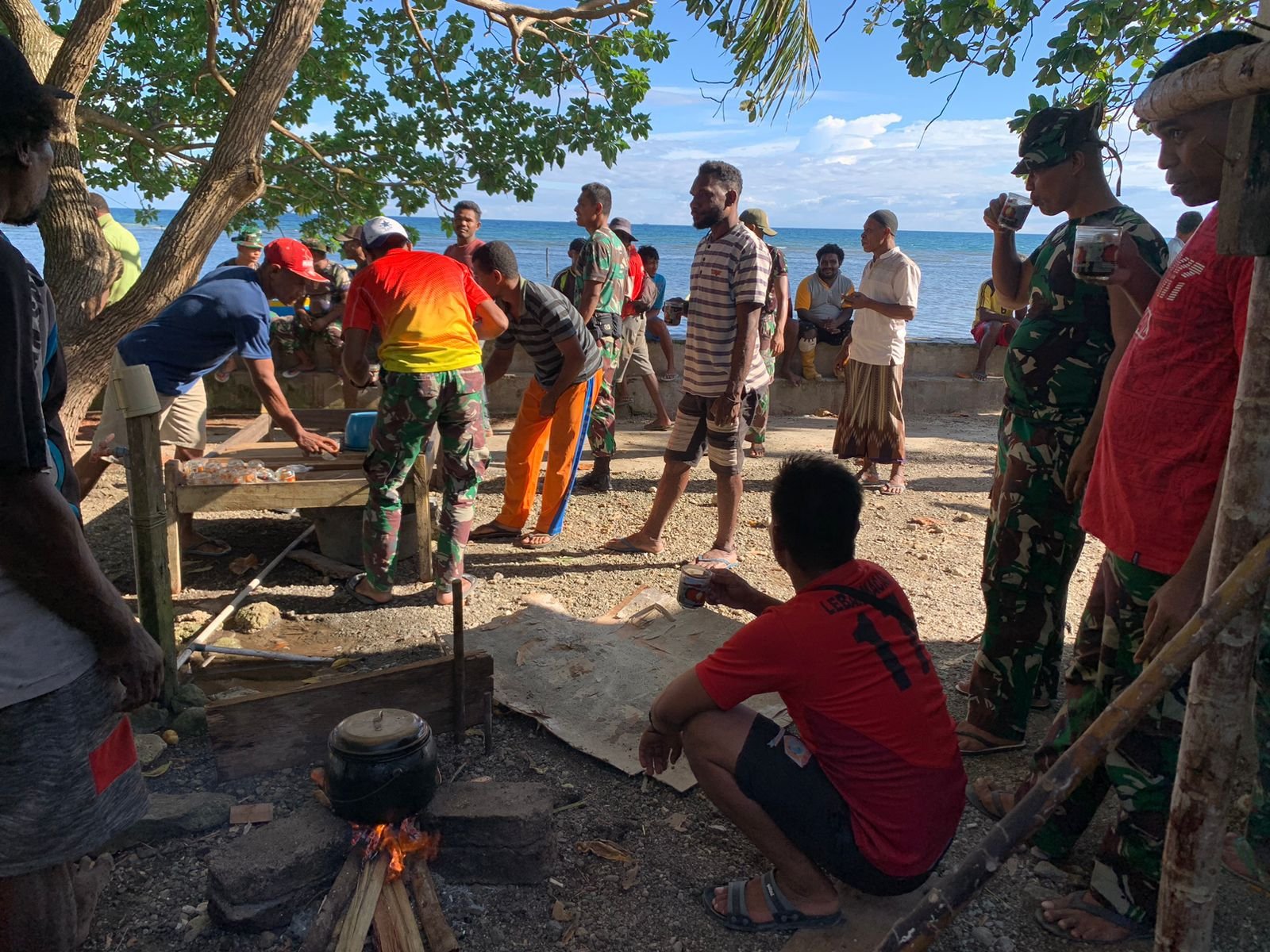 Kebersamaan TNI Kodim 1512/Weda Dan Masyarakat di Lokasi TMMD Ke-116 di Desa Baka Jaya