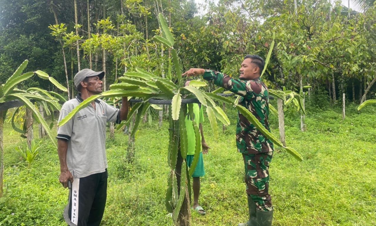 NASIONALXPOS.CO.ID, PAPUA – Satgas Yonif 143/TWEJ Pos Yuruf mendatangi Kebun Buah Naga untuk memberikan pemahaman bagi warga yang mengalami kendala dalam berkebun di Kampung Yuruf, Distrik Yaffi, Kabupaten Keerom, Papua, Sabtu (25/02/2023).