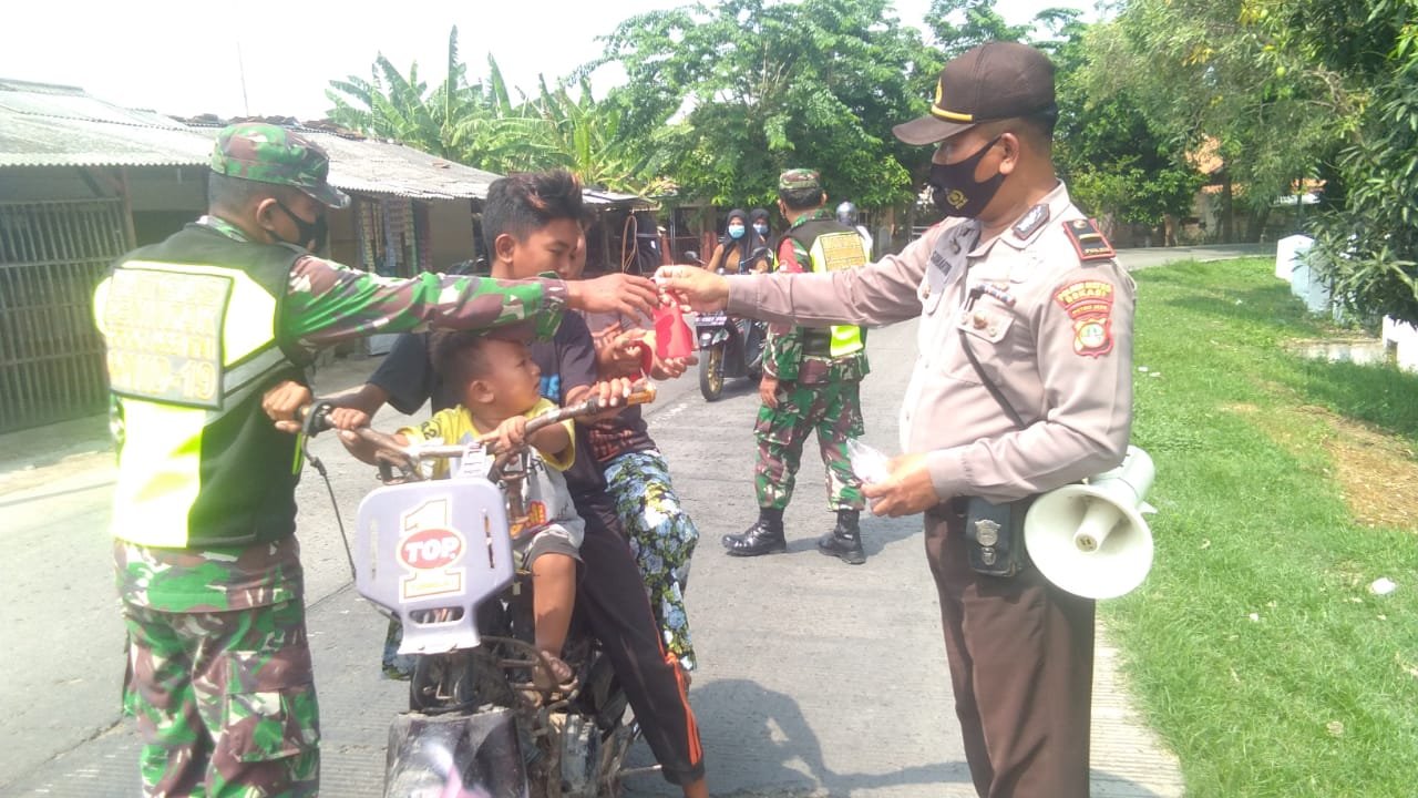 NASONALXPOS.CO.ID, BEKASI – Polsek Pebayuran Polres metro Bekasi Bersama TNI dari Koramil Yonip (11) Pebayuran giat trus melakukan ops yustisi razia masker, di jalan raya Pebayuran Kecamatan Pebayuran, Kabupaten Bekasi, (13/10/2020).