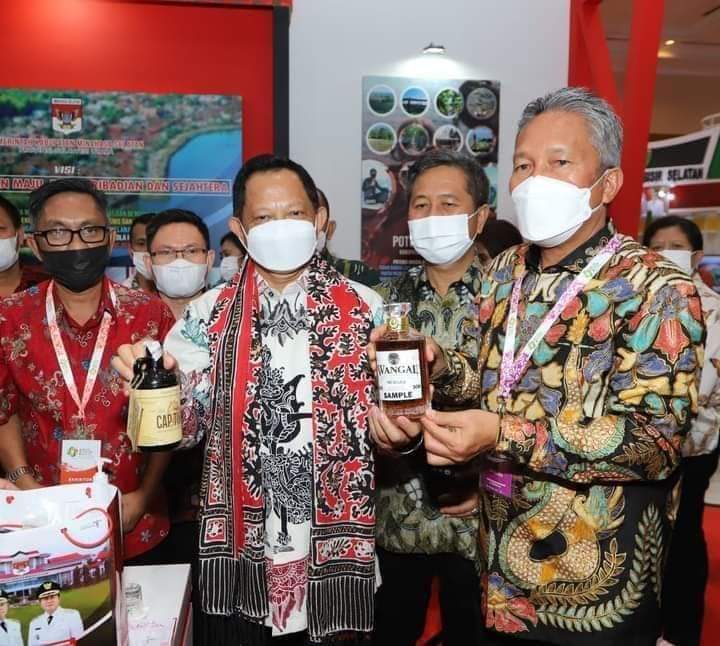 Didalam area pameran tersebut,terlihat Mendagri Tito Karnavian mampir ke stand Minahasa Selatan dan melihat berbagai produk unggulan UKM .