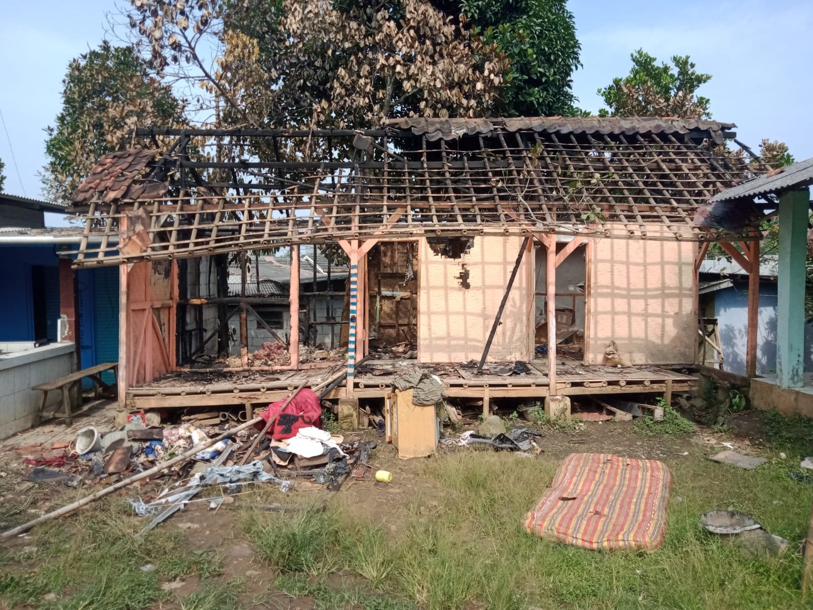 “Alhamdulillah api padam dan tak sempat menjalar ke bangunan sebelah karena kami para santri dibantu warga sekitar berupaya memadamkan dengan peralatan seadanya, tapi ya bisa dilihat itu bangunan Kobong terbakar semua tak bisa dipakai lagi,” Ungkap Ustadz Rohim ditemui dilokasi saat dikunjungi Tim Kecamatan dan Kelurahan Tigaraksa yang juga menyerahkan bantuan Sembako dari BPBD Kabupaten Tangerang Selasa (11/10).
