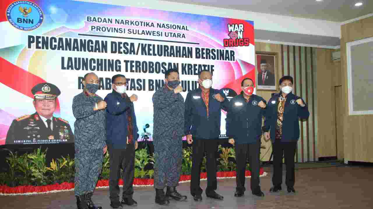 NASIONALXPOS.CO.ID, MANADO – Kepala Badan Narkotika Nasional (BNN) RI Komjen Pol Petrus Golose didampingi Gubernur Sulut Olly Dondokambey, Wakapolda Sulut Brigjen Pol Johnny Eddizon Isir dan Kasdam XIII/Merdeka Brigjen TNI Wirana Prasetya Budi mencanangkan Desa dan Kelurahan Bersih Narkoba (Bersinar), serta Launching Terobosan Kreatif Rehabilitasi BNNP Sulut.