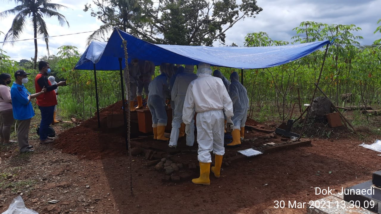 Prosesi pemakaman TD dilakukan dengan menerapkan Prokes Covid-19, yang dihadiri oleh beberapa pihak keluarga TS. Sementara dari pihak Satgas Kecamatan Wanareja tampak hadir Kasie Tantribum Sunarto, anggota Koramil Wanareja Serka Abdul, Kepala Desa Madura Nursidik.