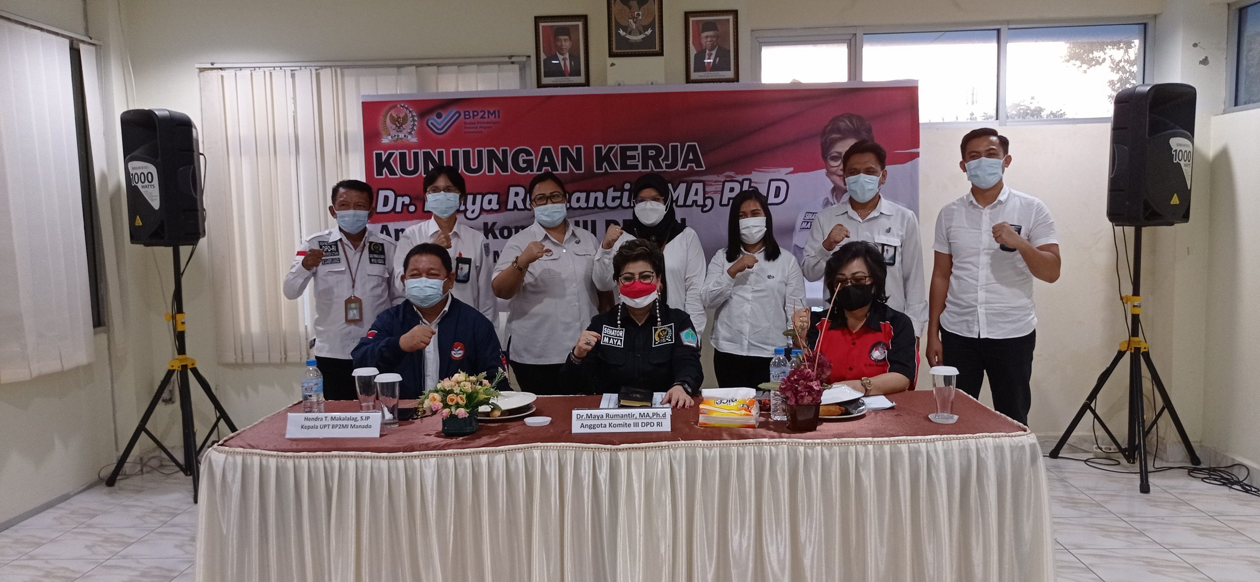 NASIONAL XPOS.CO.ID MANADO | Kepala UPT Badan Pelindungan Pekerja Migran Indonesia ( BP2MI ) Manado Hendra.T Makalalag menerima Kunjungan kerja Anggota Dewan Perwakilan Daerah Republik Indonesia (DPD RI) Dr. Maya Rumantir.MA, Ph.D di ruang Meeting Kantor BP2MI hari ini pada Selasa sore ( 26/10/2021).
