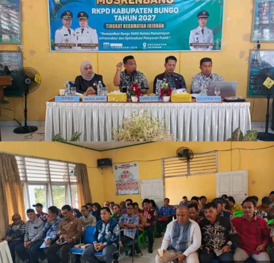 NASIONALXPOS.CO.ID, BUNGO – Ketua DPRD Kabupaten Bungo, Muhammad Adani, SH., M.Kn., menghadiri dan mengawal langsung Musyawarah Perencanaan Pembangunan (Musrenbang) RKPD di Kecamatan Jujuhan, Kamis (12/02/2026).
