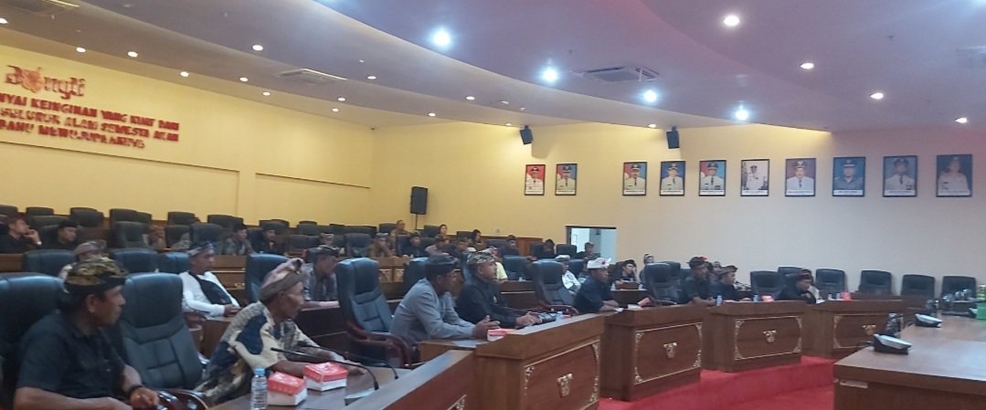NASIONALXPOS.CO.ID, BANGLI – Ketua DPRD kabupaten Bangli I Ketut Suastika menerima puluhan warga desa adat Tegalallang di ruang rapat paripurna DPRD dalam penyampaian aspirasi warga, Senin, (6/4/2026) pukul 09.00 Wita.