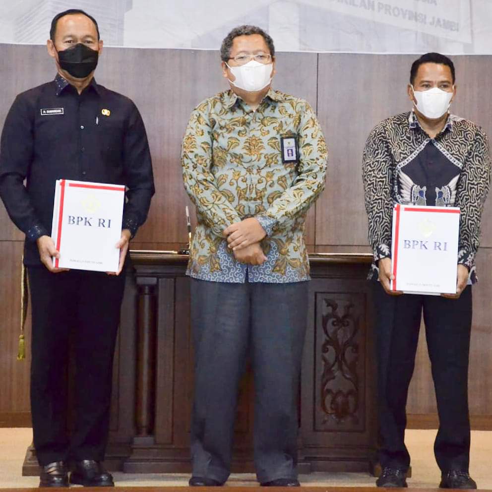 Predikat WTP diberikan saat Penyerahan Laporan Hasil Pemeriksaan (LHP) atas Laporan Keuangan Pemerintah Daerah Kabupaten Tebo (LKPD) Tahun 2021 oleh Kepala BPK Perwakilan Provinsi Jambi Rio Tirta kepada Bupati Tebo Dr. H. Sukandar S. Kom. M. Si yang didampingi Ketua DPRD Tebo Mazlan, S.Kom di Kantor BPK Perwakilan Jambi, Kamis (12/05/2022).