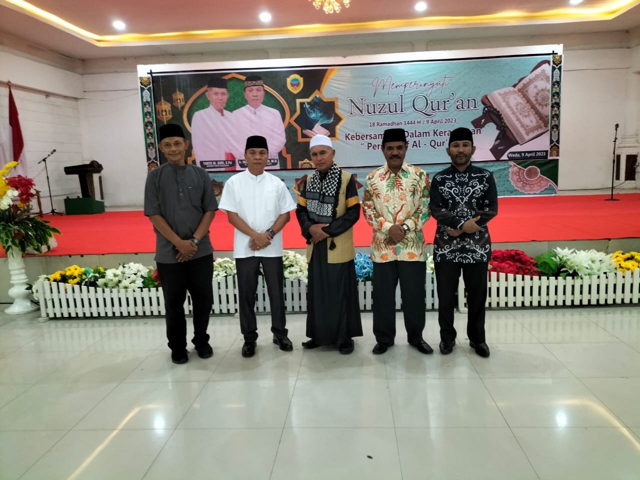 NASIONALXPOS.CO.ID,HALTENG- Tepat malam ke 18 Ramadhan 1444 H. Ketua PCNU Kabupaten Halmahera Tengah Drs. H Nurhalis Abubakar, MH mewakili Kepala Kantor Kemenag Halteng H Muhammad Qubais Baba, SAg MPd menghadiri peringatan Nuzul Qur’an 1444 H yang diselenggarakan oleh Pemerintah Daerah Kabupaten Halmahera Tengah dengan Tema Kebersamaan Dalam Keragaman Perspektif Al Qur’an. Minggu (09/04/2023).