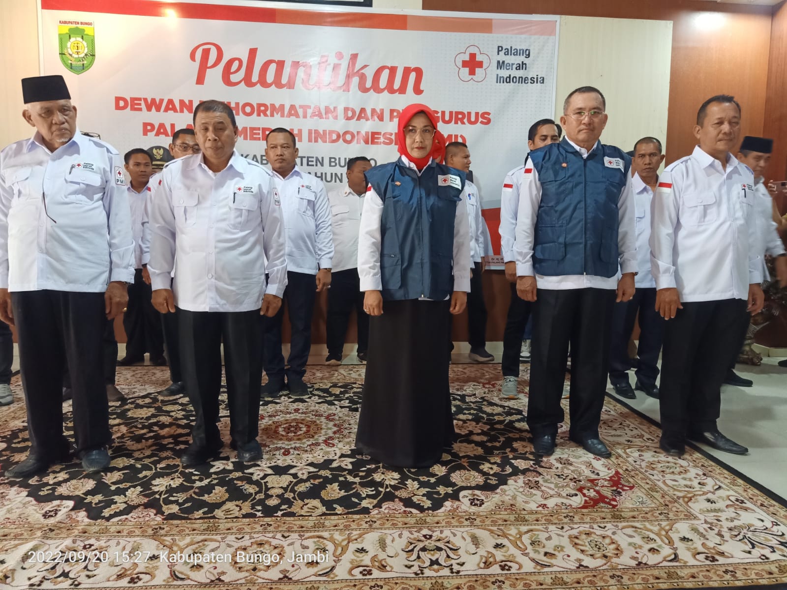 Pelantikan ditandai dengan pengucapan ikrar dan penandatanganan berita acara pelantikan Dewan Kehormatan, Ketua serta Pengurus PMI Kabupaten Bungo Masa Bakti Tahun 2022-2027 oleh Ketua PMI Provinsi Jambi