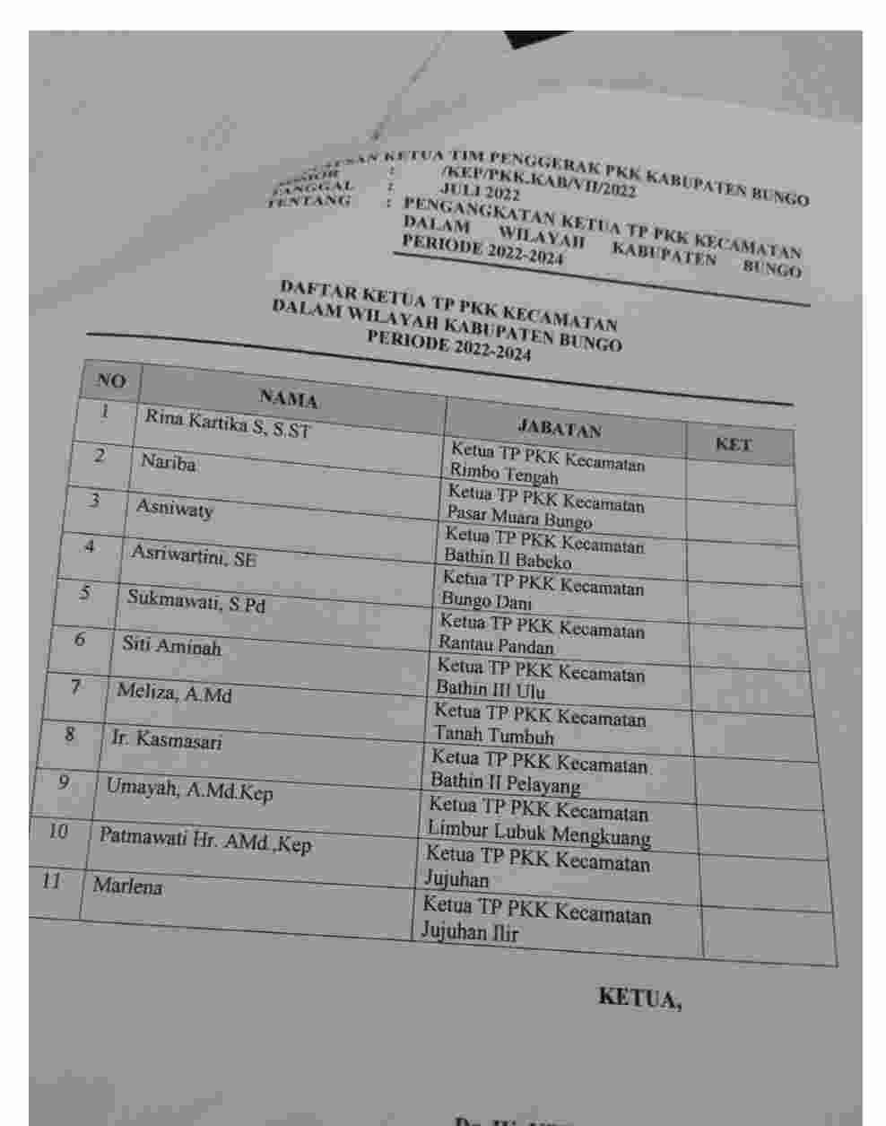 Ini nama-nama 11 ketua TP PKK Kabupaten Bungo yang dilantik :