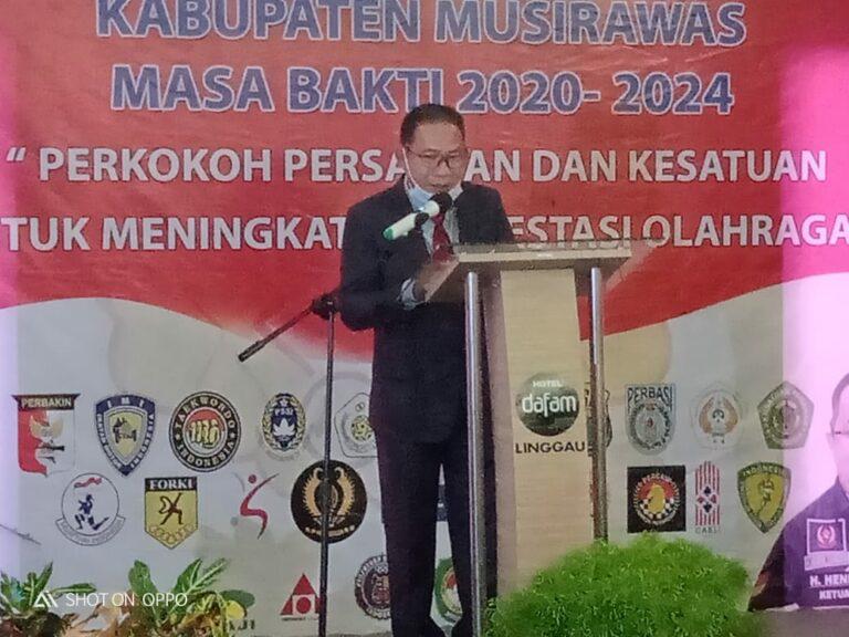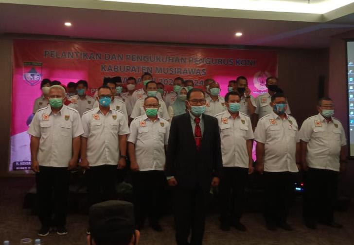 NASIONALXPOS.CO.ID, MUSI RAWAS – Ketua KONI provinsi Sumatera Selatan (Sumsel) Hendri melantik Pengurus Komite Olahraga Nasional Indonesia (KONI) Kabupaten Musirawas, Acara yang berlangsung di Hotel Daffam Kota Lubuklinggau, pada Jum’at (29/01/2021).