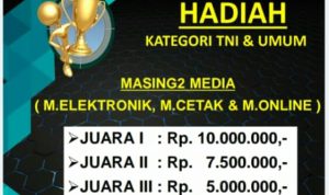 Lomba terbuka untuk media elektronik, media cetak, dan media online, dengan dua kategori. Yakni TNI (AD, AL, dan AU) serta Umum.
