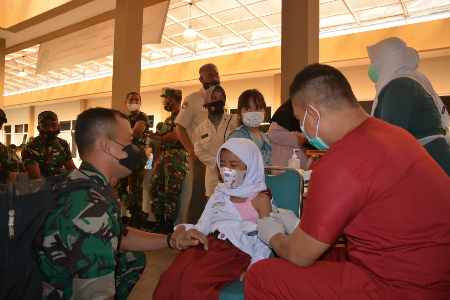 “Sementara itu, untuk anak-anak menggunakan vaksin dosis 2 jenis Coronavac sebanyak 86 orang. Ada juga Masyarakat Umum yang melaksanakan Vaksinasi dosis 1 dan dosis 2 sebanyak 10 orang. Adapun jenis yang dipakai, adalah Coronavac, Modern dan Astra Zeneca,” kata Kapendam.
