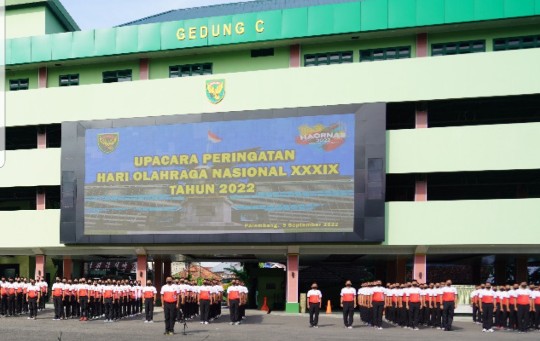 NASIONALXPOS.CO.ID, Segenap Prajurit dan PNS Kodam II/Sriwijaya wilayah Garnizun Palembang, melaksanakan upacara dalam rangka memperingati Hari Olahraga Nasional (Haornas) XXXIX Tahun 2022, Jum’at (9/9/2022) di lapangan Apel Makodam II/Sriwijaya, Palembang.