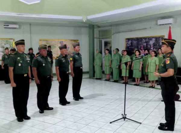 NASIONALXPOS.CO.ID, KOTA BITUNG – Kodim 1310/Bitung menggelar acara tradisi penerimaan personel baru, pelepasan personel pindah satuan dan purna tugas,